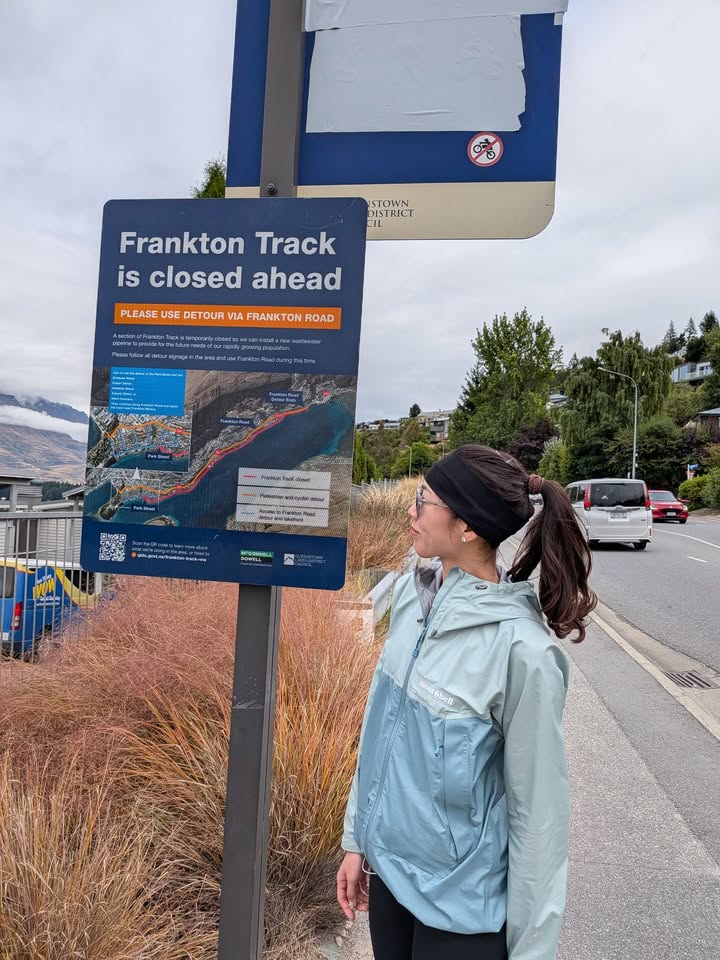 原本計畫下山沿著 Frankton way 海岸跑,結果封路整修,吃了閉門羹,又繞回大路,這一趟折騰下來耗時 4 小時。
