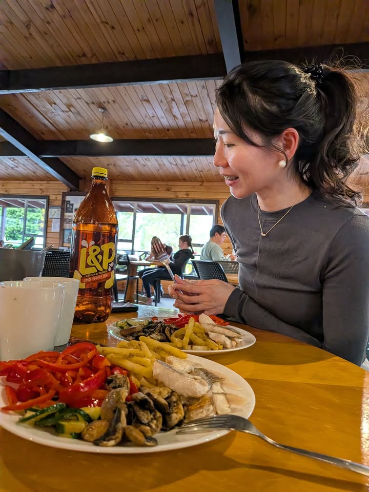 順道一提,假日公園的廚房常設有「共享食材區」,大家會把用不到的食材留下。我們在基督城的 Tasman Holiday Park 遇到最豐富的一次:油、鹽、各式調味料、蜂蜜、米、麵條、罐頭、廚房紙巾、甚至喜瑞兒可說是應有盡有!可惜我們最後一晚才待在那裡,也是把煮不完的食材傳承給下一批旅人。