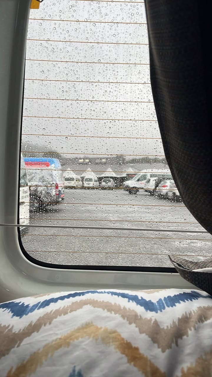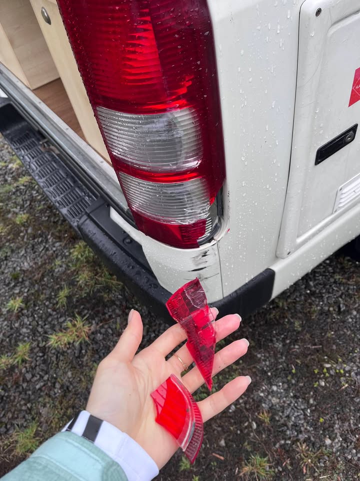 我衝刺回車旁,原來是一位德國媽媽,不熟悉大台右駕露營車,沒抓準車距,直接削了我們的後車燈。