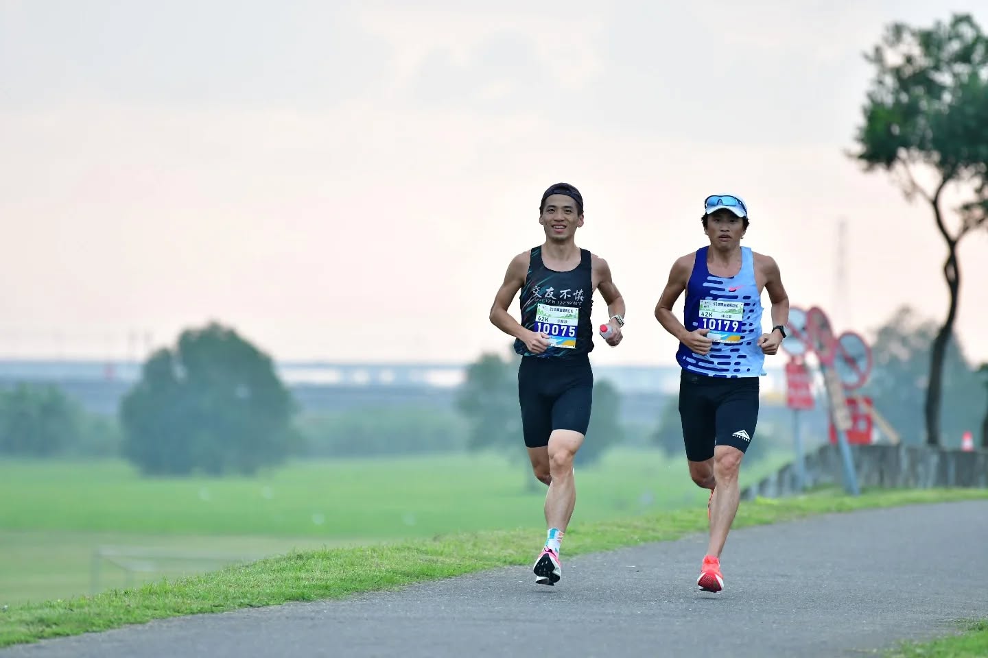 我們並肩跑了一段,